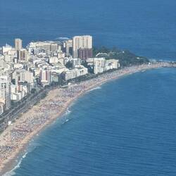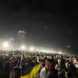 Drohnenflug über einen Teil der 3 Millonen Menschen, die die Copacabana zu Silvester dieses Jahr besucht haben. Wir befinden uns in etwa Höhe Hilton und an der vorderen Bühne. In Richtung Ipanemaもっと詳しく