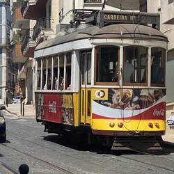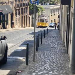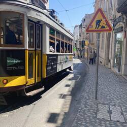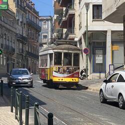 Die berühmten Strassenbahnen von Lissabon, die die teils extrem steilen Strassen wie hier in Estrela entlangdüsen. Sehr schöner Anblick.