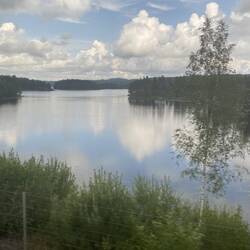 Mit dem Zug und dem Bus von Stockholm nach Oslo. Unzählige Seen und Wälder.