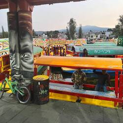 Bei den schwimmenden Gärten von Xochimilco. Nur 22km im südlichen Teil der Stadt entfernt. Den ersten Teil gelaufen und ein wenig Smog eingeatmet. Kein Problem mit dem Taxi. Dachte ich…