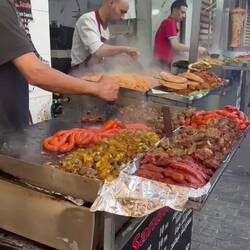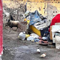 Wildes Durcheinander. Schafsköpfe und Hackfleisch in der Sonne und ein alter Herr zockt ungeniert kleine Kinder mit vermeintlichem Glücksspiel ab.