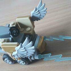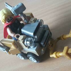 Thor, der Gott des Donners und sein Hammer Mjolnir fahren auf einem Streitwagen, der von zwei Ziegenböcken gezogen wird. Die beiden heißen TanngnjostrRead more