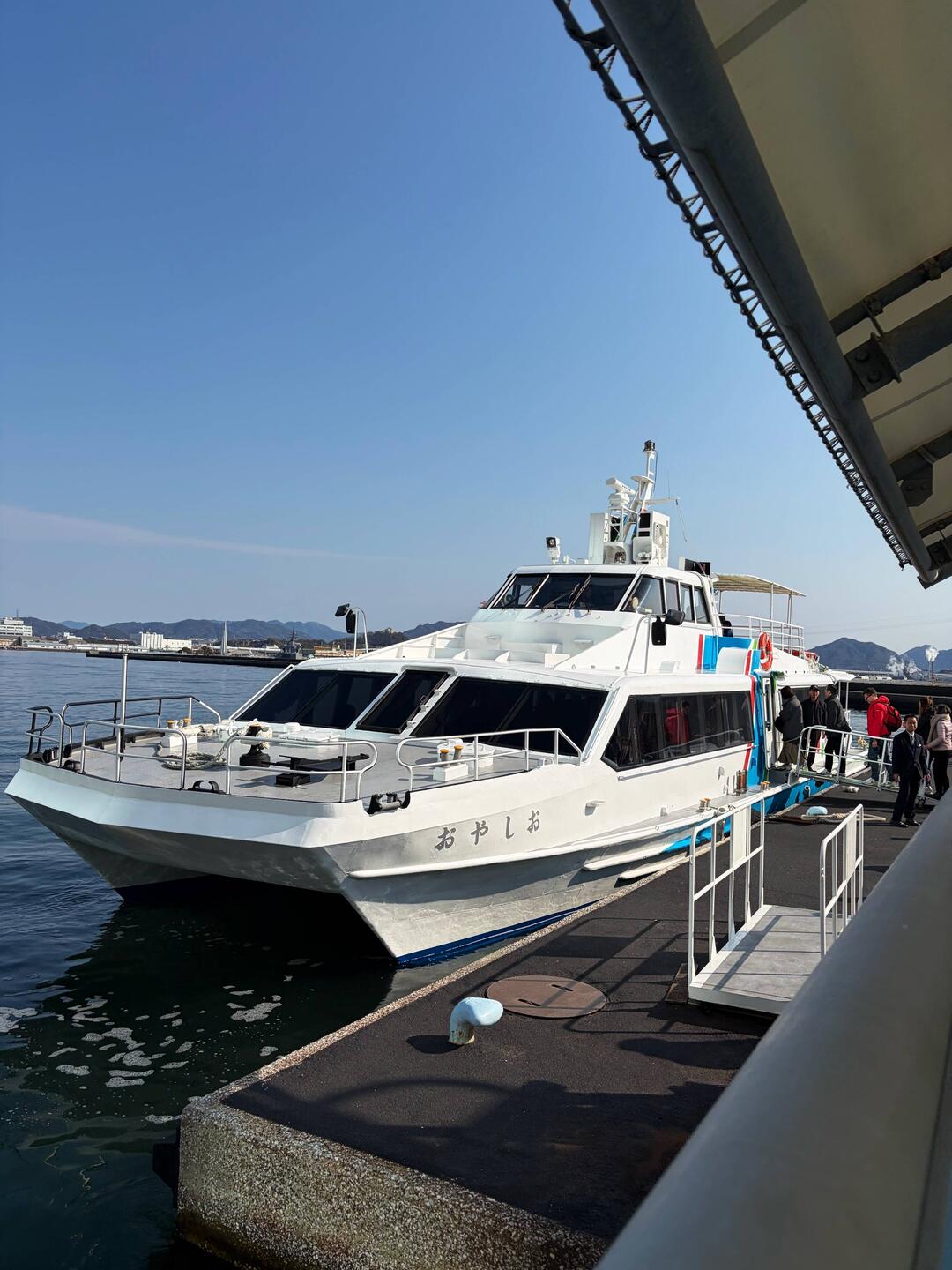 Aujourd’hui, nous sommes allés en bateau rapide sur l’île de Miyajima.