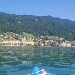 A beautiful lake but seems like swimming is not allowed but people can sail and kayaking