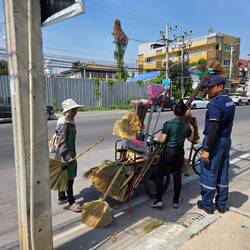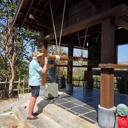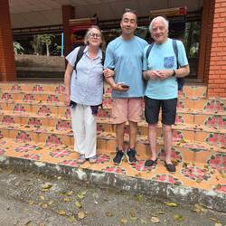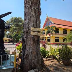Après un petit déjeuner avec vue sur la mer, en route pour la blanchisserie et ensuite balade tranquille dans l'enceinte du Wat ThongChai Thammachak qui comprend également une école.