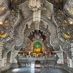 Le Wat Sri Suphan-Silber tempel a été construit en 2043 et nous sommes en 2569 en Thaïlande. En argent pour les parties les plus importantes ou visibles, mais aussi en aluminium.