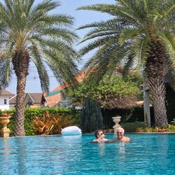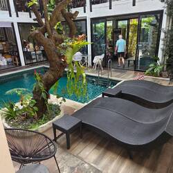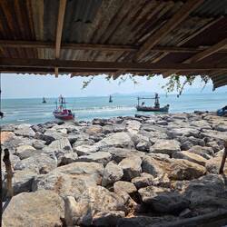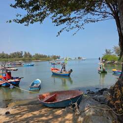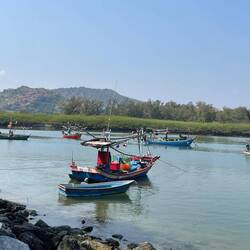 Piscine du matin, balade à vélo le long de la côte, salutation au Wat Khao Kalok, bateaux de pêche, et petit restaurant charmant sous les arbres avec brise légère et rafraîchissante aprèsRead more