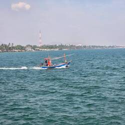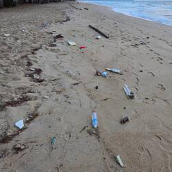La mer était plus calme ce matin et le ciel dégagé. Près des hôtels les petites mains discrètes avaient entassé les dechets rejetés sur la plage pour les emporter en tuk tuk.