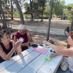 C'était pas gagné mais on a trouvé un point de rencontre dans un endroit super où il fait bon papoter, nager, se promener sur la plage de sable fin, pédaler et se restaurer.