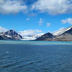 Monacobreen, the large tidewater glacier at the end of Liefdefjorden. Unfortunately the wind picked up so no Zodiacs could be launched.
