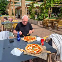 Abends gehen wir nochmal in die Stadt um zu essen. Ich wollte gerne zum Italiener. Ein herrlicher Abend, warm, blauer Himmel, gute Stimmung.