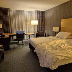 Wieder im Düsseldorfer Maritim. Heute morgen herrlichstes Wetter, habe es aber nicht zum Frühstück geschafft, da ich lange geschlafen habe