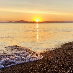 Abends erleben wir wieder einen wunderschönen Sonnenuntergang hinter der vorgelagerten Insel Zakynthos, während die jungen Leute neben uns Wikingerschach spielen oder ebenfalls den Sonnenuntergang genießen. Man hat das Gefühl, in einer Welt der Leichtigkeit des Seins zu sein.Leggi altro