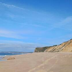 Wunderschöner und sauberer Strand mit beeindruckenden Klippen.