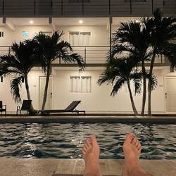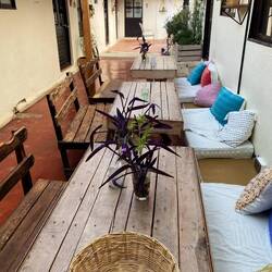 Ein langer Tag geht zu Ende. Mit einem Uber fahren wir Richtung Hotel. Ein paar Häuser weiter ist ein Restaurant , das möchten wir einmal ausprobieren. Coole Location in einem Innenhof. YvönnekenLue lisää