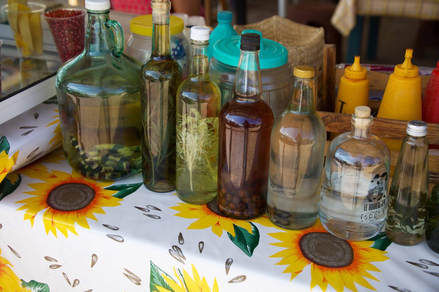 Wir verlassen Hierve el Agua und kommen an zahlreichen Mezcal Fabriken vorbei. Mehr kleine Strohhütten mit einem Mühlstein und einem Esel 🫏 davor. In allerlei Flaschen und Gefäßen, mit TeilsLue lisää