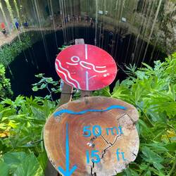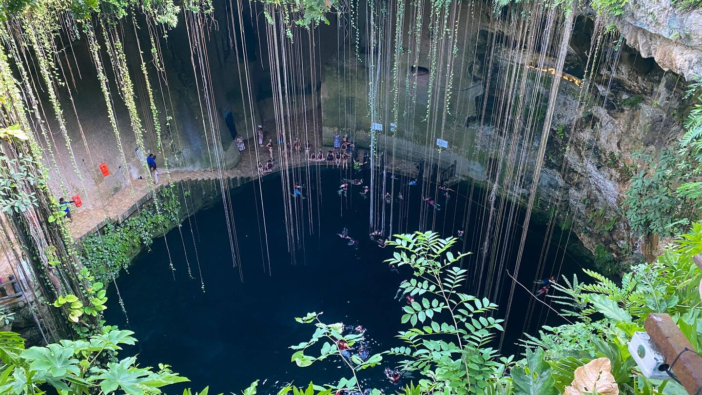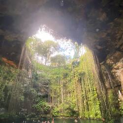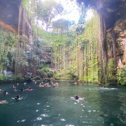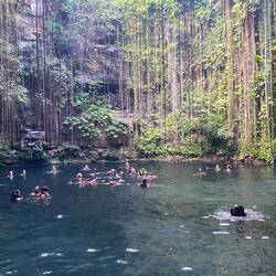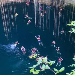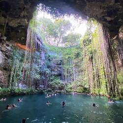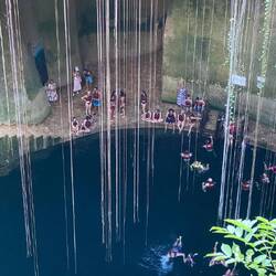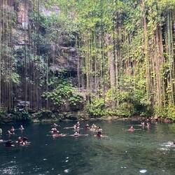 Von Chichén Itzá 🛕 aus ist es gar nicht weit zur Cenote Ik- Kil und eine kleine Abkühlung kann ja auch nicht schaden. Alles ist hier gut organisiert, wir bekommen einen Spind, dann einmal kurzLue lisää
