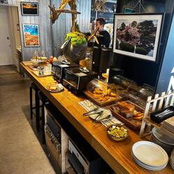 Ich habe gut geschlafen und war um 9 Uhr beim Frühstück. Das Frühstück ist überschaubar, aber Preis-Leistung stimmt. Mal sehen, ob es jeden Tag das Gleiche ist.