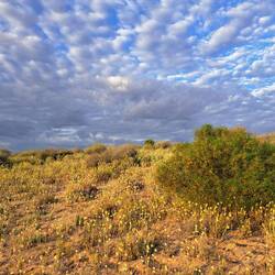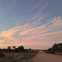 What a day!! A few spots of rain & claps of thunder & I was a mess. Didn't want to go through what we did last time. Mal tried again to find a way to camp near the spinifex, but we failed.