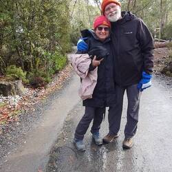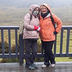 Had a long walk around Dove Lake today. Had yummy pizza at the resort for a very late lunch/tea. Then a Hot Toddie each. We got rained on the last part of the lake.