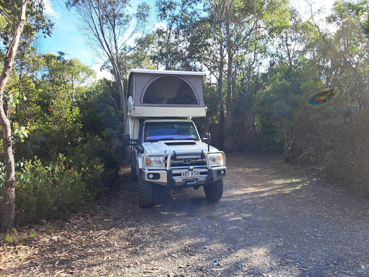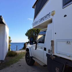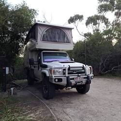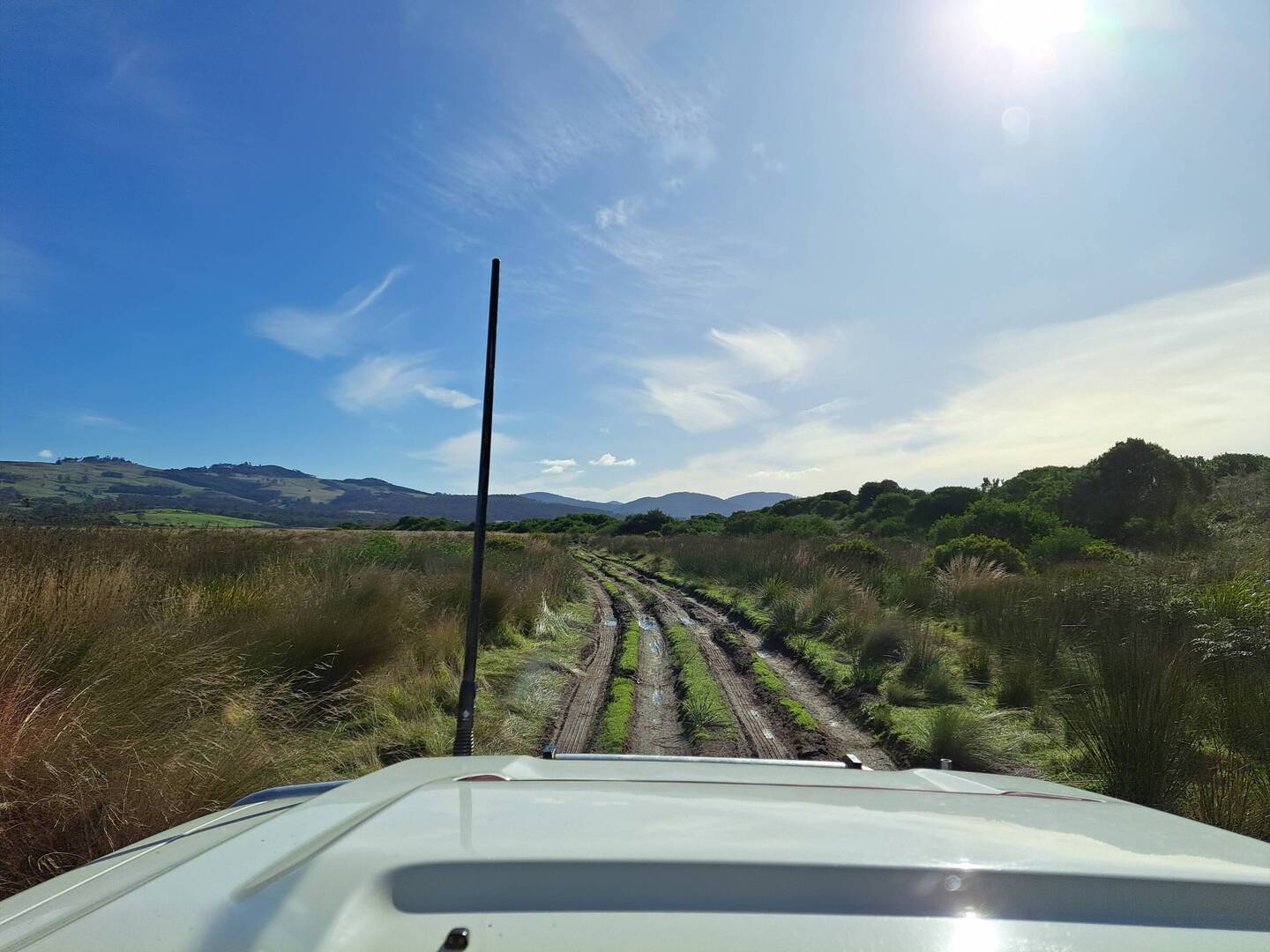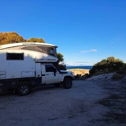 Started raining as we got to here, very windy so are camped back off the beach in the bushes! Had to reverse back 150m along a narrow track to get in.