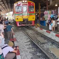 Heute haben wir einen Ausflug zum Meaklong Market gemacht, um den Zug zu sehen der durch den Markt fährt. Lustig und alles voller Touristen