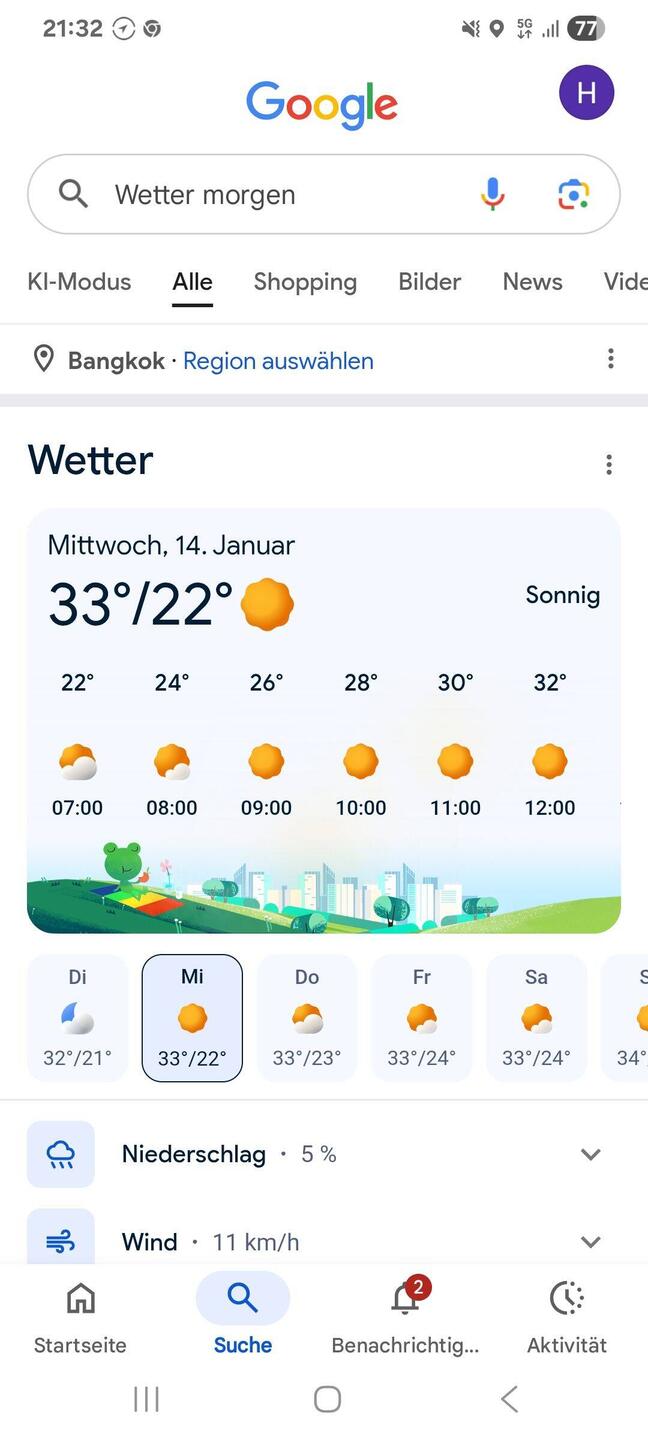 January 14 in Thailand ⋅ ☀️ 32 °C