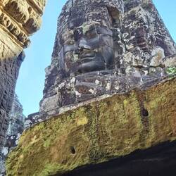 Dieser wunderschöne Tempel wurde im 12. Jahrhundert errichtet und wurde der Haupttempel . Er ist berühmt wegen seiner meterhohen Gesichter .