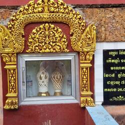 Unterwegs in Kambodscha gibt es natürlich viele Geisterhäuschen und Buddha.