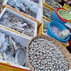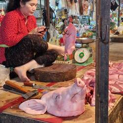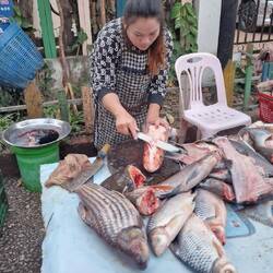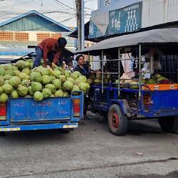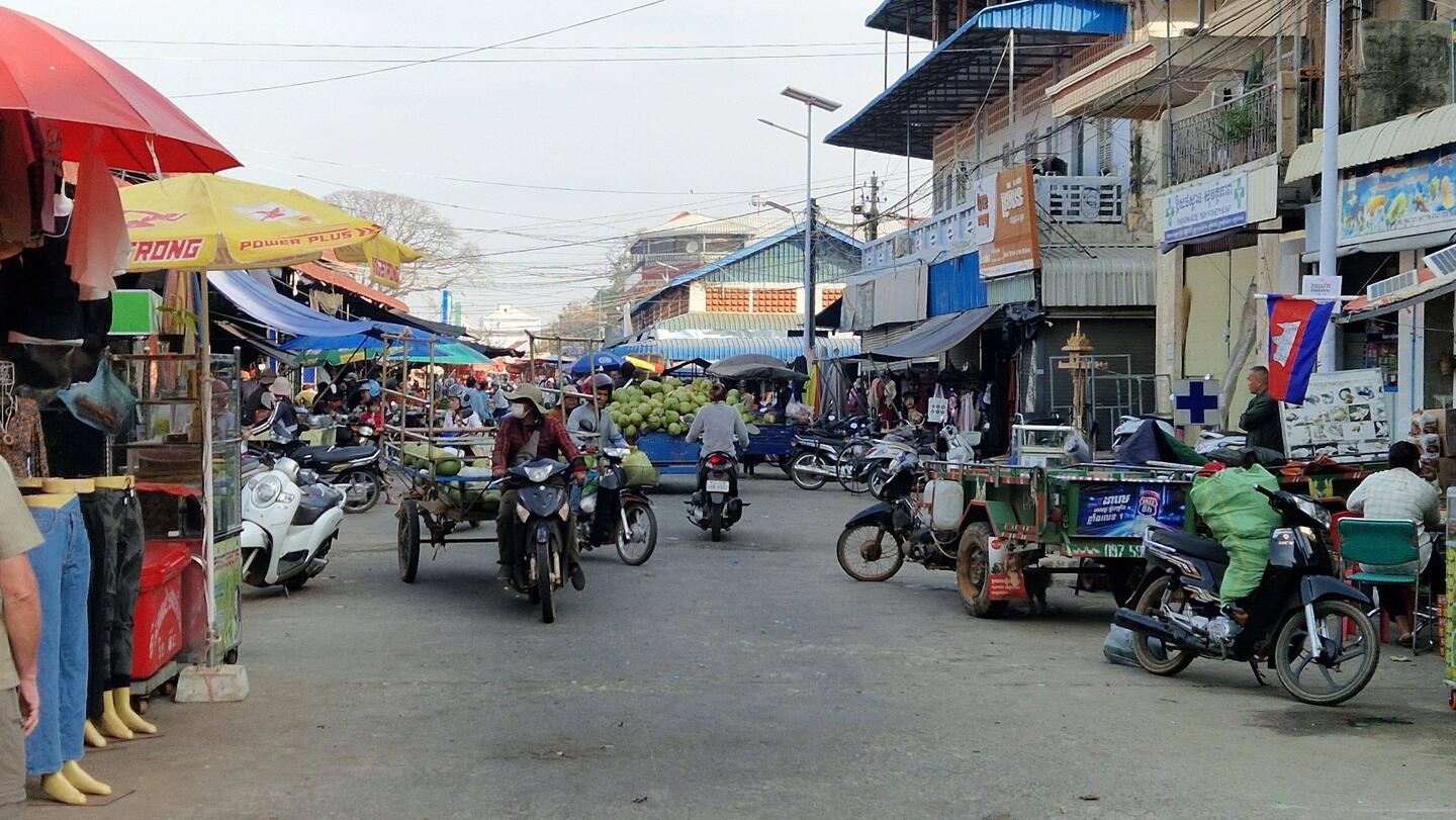 Auf dem Weg in die Hauptstadt "Phnom Penh" hielten wir an einem Morgenmarkt.