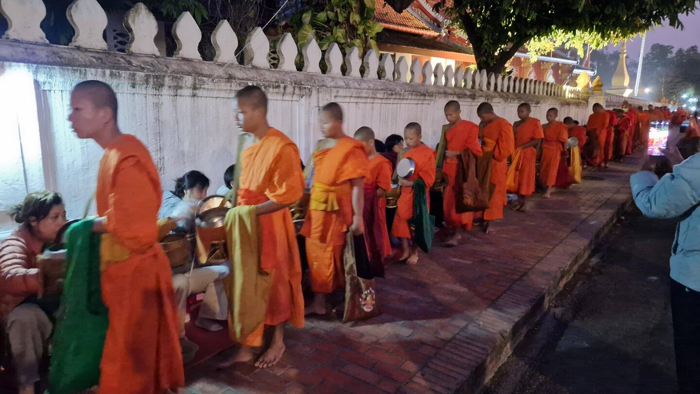 Es geht zu den Mönchen zum Almosengang und zum Morgenmarkt "Thaheu May".