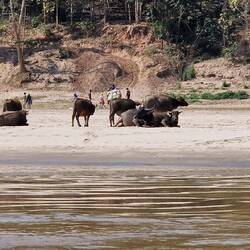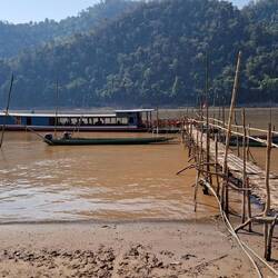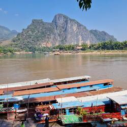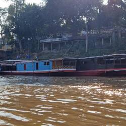Mit einem Langboot fuhren wir den Mekong-Fluss aufwärts Richtung einer Höhle - Pak Ou.