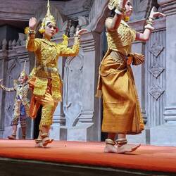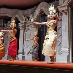 Bei einem Abend Buffet "Khmer-Küche" schauen wir uns die Apara Tänze an.