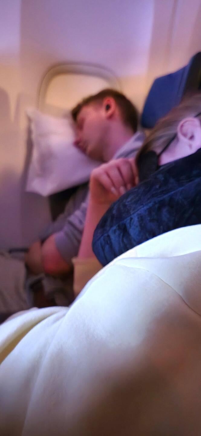 Der Flug verlief ruhig. Nur über Kanada war es etwas holprig und sie mussten den Service einstellen. Geschlafen haben wir auf jeden Fall gut.