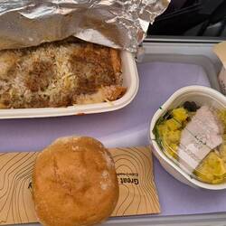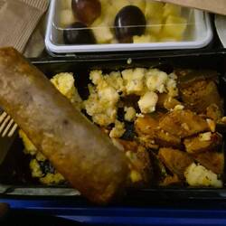 Am Ende haben wir insgesamt knapp sechs Stunden geschlafen, mit Unterbrechungen, bis wir irgendwann durch den morgendlichen Service geweckt wurden. Das war dann ziemlich schön, weil eigentlich alle Fensterblenden geschlossen waren, aber ein paar Leute die Blenden geöffnet haben und man so einen wirklich schönen Sonnenaufgang über den Wolken sehen konnte. Danach gab es ein typisch amerikanisches Frühstück mit recht hohem Fettanteil, aber nach dem langen Flug war das tatsächlich ganz okay. Der Schlaf war zwar nicht besonders tief, aber er hat definitiv etwas Erholung gebracht.
