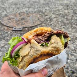 Danm gabs was schönes. Einen Burger. Ich hatte gefrühstückt. Um 8 und dann bis 16 Uhr nix gegessen - unangenehm😂