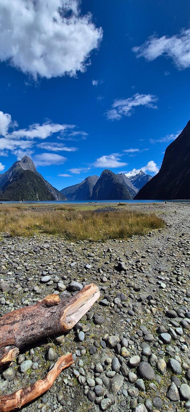 In Milford Sound sind wir dann viel zu früh angekommen und hatten noch ungefähr eine Stunde Überbrückungszeit, aber das war kein Stress. Dort dann gefrühstückt, mitgebrachtes Zeug, Aussicht genossen und dabei von Stechfliegen komplett zerstochen worden.