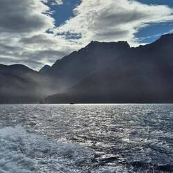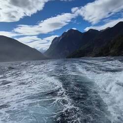 Irgendwann ging dann das Schiff los. Zwei Stunden durch den Fjord mit wirklich mega schöner Aussicht. Leider hat es die letzten sechs Tage kaum geregnet, deshalb waren nur etwa fünf bis zehn Prozent der Wasserfälle zu sehen, die es dort eigentlich gibt. Was schon ein bisschen traurig ist, weil der Milford Sound ja eigentlich gerade bei Regen richtig spektakulär sein soll. Ironischerweise hat es genau an dem Tag nicht geregnet, an dem wir dort waren – dafür dann morgen wieder. Naja, so ist das halt.