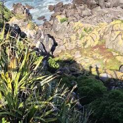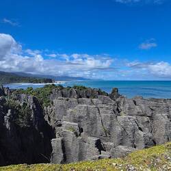 Ziel waren zunächst die Pancake Rocks (die wer hätte es gedacht, wegen ihrem Pfannkuchenähnlichen aussehens so heißen). Dort angekommen wollten sie uns 5 NZD fürs parken abknöpfen. Wir so: Die ersten 20min sind frei? Das schaffen wir.