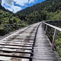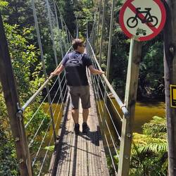 Weiter gefahren (ca 3min) und begonnen eine Wamderung zu machen (geplant 1,5h). Entlang eines Flusses zu einer Hängebrücke durch Subtropischen Wald, nen Berg nach oben und wieder runter sind wir auf der anderen Seite das Tals angekommem. Deshalb mussten wir entlang des Highways zurücklaufen, wieder vorbei an dem Cafe und unserem 5$-Parkplatz und so kamen wir 2:38:35 später wieder am Auto an. Tot. Denn: Die Sonne war da - schon den ganzen Tag. Und dee Weg entlang des Highways war natürlich: Scheiße heiß.😅