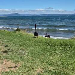 Dann wieder aufgebrochen und Richtung Coromandel gefahren. Die Straße führte uns entlang der Küste, geschwungen und manchmal kein Meter zwischen uns und dem Meer. Richtig schön aber auch anstrengend zu fahren. Zwischendrin mal Pause gemacht, Aussichten genossen und schlussendlich am Parkplatz unserer Lok-Tour eine Nickerchen gemacht (50% der Belegschaft)
