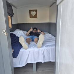 Jeder hat ne eigene Hütte (Bauwagen). Meine ist so groß das grad mal das Bett reinpasst und nicht unbedingt abschließend. Hatte schon einigr Tierische Besucher.
