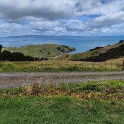 Angezogen und losgefahren Richtung Auckland. Ich hab mich beim fahren schon müde gefühlt, weswegen wir dann erstmal im Supermarkt ne Cola gekauft haben. Eine halbe Flasche später gings dann wieder und es ging nicht entlang der Hauptstraße sondern entlamg der Küste weiter. Nach einigen Kilometer tat sich ein Rastplatz mit Klo, Kiosk und Aussicjt aufs Meer auf. Angehalten und dann mal nen Natz eingelegt während im Hintergrund der Superbowl lief. Nach der Halbzeitshow überraschend fit weitgerfahren und es tat sich nochmal Neuseelands schönste Landschaft auf: