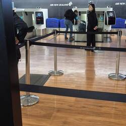 Kurz vor der Landung wurde noch angekündigt, dass es in Auckland eventuell stärkere Turbulenzen geben könnte, da das Wetter recht wechselhaft sei. Das ist dann aber gar nicht eingetreten. Der Anflug war ruhig, die Landung ebenfalls, alles völlig problemlos. In Auckland gelandet haben wir auf dem Weg Richtung Ausgang per Durchsage mitbekommen, dass noch ein Einreiseformular auszufüllen ist. Das haben wir dann online erledigt, was ungefähr eine halbe Stunde gedauert hat. Danach ging es ohne weitere größere Kontrollen direkt zum Express-Ausgang, ein paar Fragen beantwortet, zweimal von Hunden beschnüffelt worden, und dann waren wir auch schon draußen.