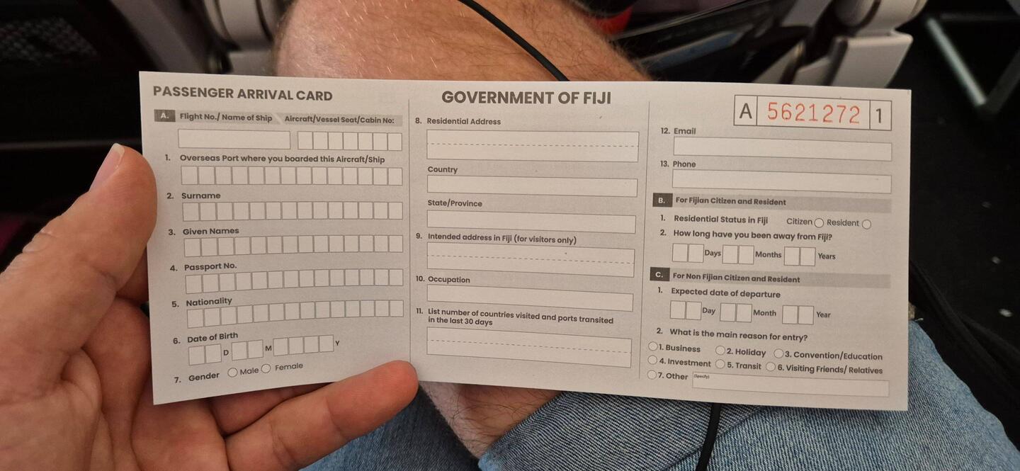Gelandet in Nadi erstmal gegen ne Wand gelaufen: 30° - 85% Luftfeuchte is hald doch wild. Eingereist: (Juhu!!! Erster Stempel) und Gepäck geholt. Ne Sim gekauft, Geld abgehoben und dann meinen Abholer gesucht....