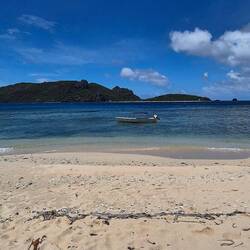 Am Hafen war schon voller Betrieb. Gepäck wurde abgenommen und ich wurde begrüßt wie ein König. 80% der Mitreisenden waren Pärchen auf Hochzeitreise, 15% Einheimischr und dann ein paar Hanserler so wie ich. Die Fahrt wurde ziemlich holprig. Wellengang war nicht ohne. Nach ~ 1,5h wurden wir dann umgeladen. Es ging auf eine kleine Nussschale mit Außenboarder. Von dieser Nussschale wurde ich nach 2min in eine noch kleinere Nussschale umgeladen. Gesteuert von meinem Gastgeber, der mich zum Strand gebracht hat. So gegen 11. Man war das allein war schon witzig, über die Wellen zu springen. Angekommen seine Frau kennengelernt, sowie die Dorftregeln erklärt bekommen. Witzig: was ich nicht bedacht hatte/ niemand gesagt hat...Trinkwasser. Entweder ich trinke braunes Leitungswasser, kaufe von hier eine Flasche für 5$ oder (was ich auch machen werde), gebe jmd Geld ders mir dsnn von det Hauptinsel mitbringt. Danach durchs Dorf gelaufen, ein paar Leute begrüßt, am Strand zurückgelaufen, mich in ne Hängematte gelegt und gelesen, Mittag gegessen, weiter gelesen und dabei in die Ferne geschaut, genatzt. Ja....und jetzt is ed 15:30 und ich hab keine Ahnung was ich heute geschweige denn die nächsten 3 Wochen machen soll. Ich glaub das wird die größte Herausforderung der ganzen Reise: Einfach nix tun.