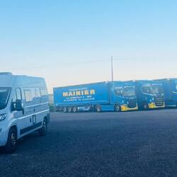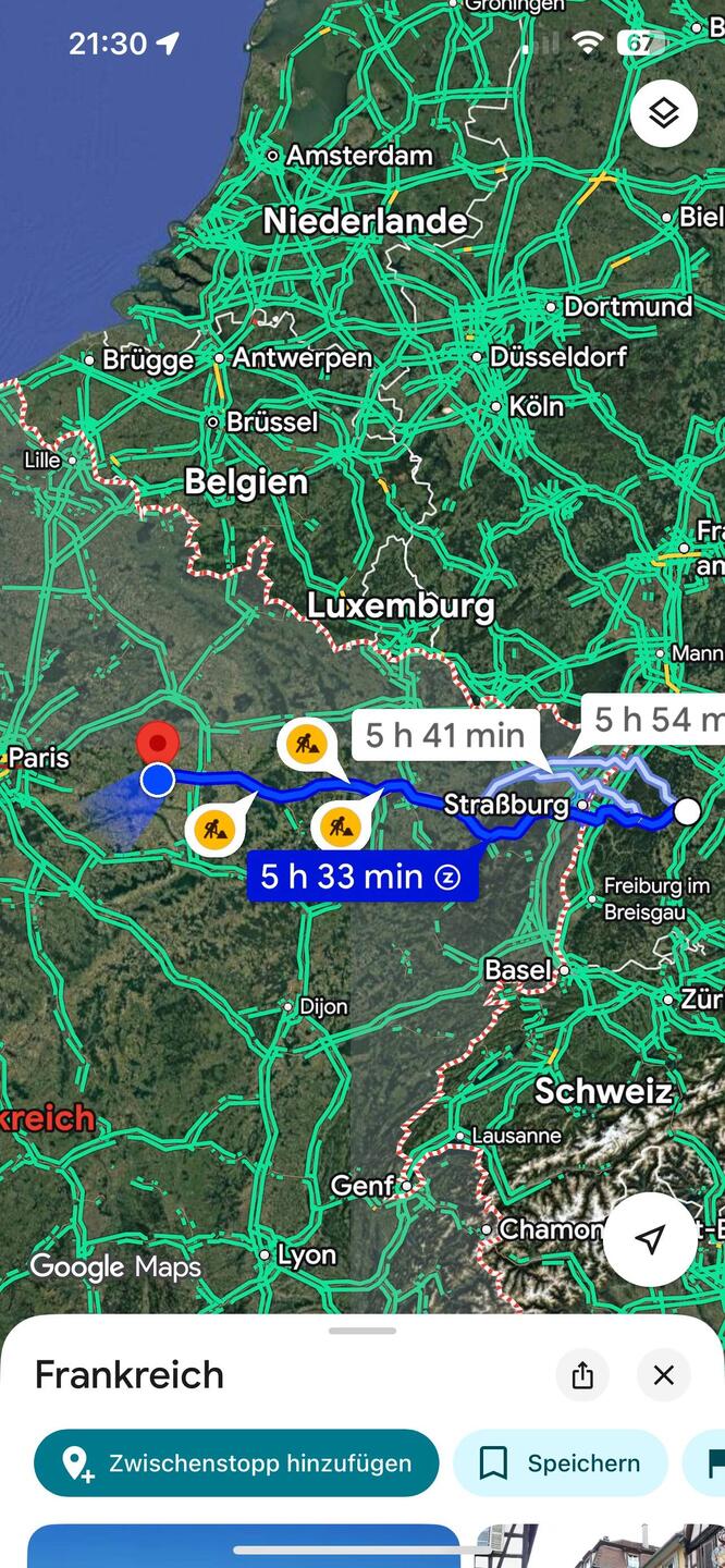 Erst um 12:03 Uhr starten wir vom Parkplatz des Routiers weil wir uns mit der nicht funktionierenden App des I Net X