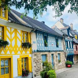 Um 9:15 Uhr gibt es ein einfaches Frühstück im Hotel, dann fahren wir noch mal nach Josselin und parken am Ortseingang, laufen unten am Kanal entlang und steigen dann die Stufen hoch zum Städtchen.Read more