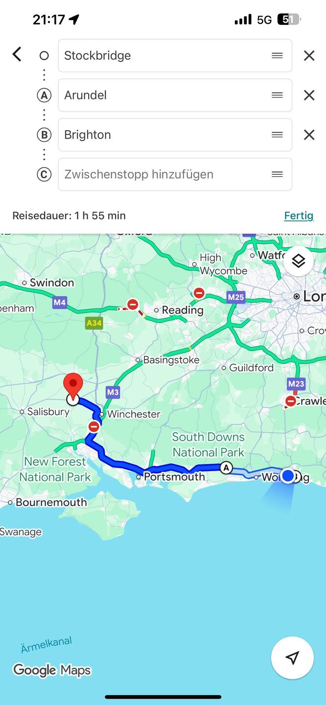 Abfahrt vom schönen Wiesenplatz bei Nieselregen ist um 13:30 Uhr. Wir wollen heute noch nach Dover und finden oben bei den Dover Kreidefelsen einen Parkplatz. Von dort aus machen wir einenBaca lagi