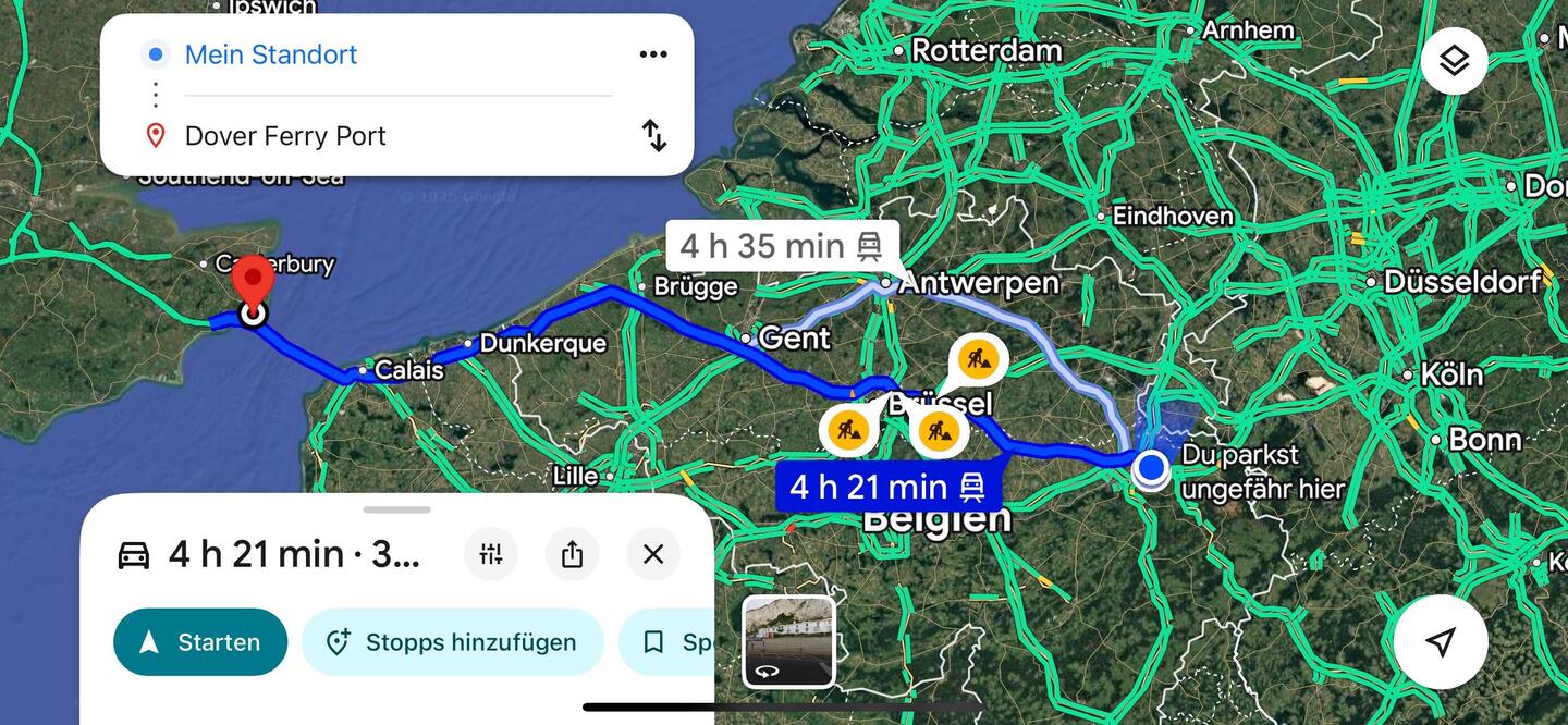 Fährüberfahrt Dover- Dünkirchen-Lüttich